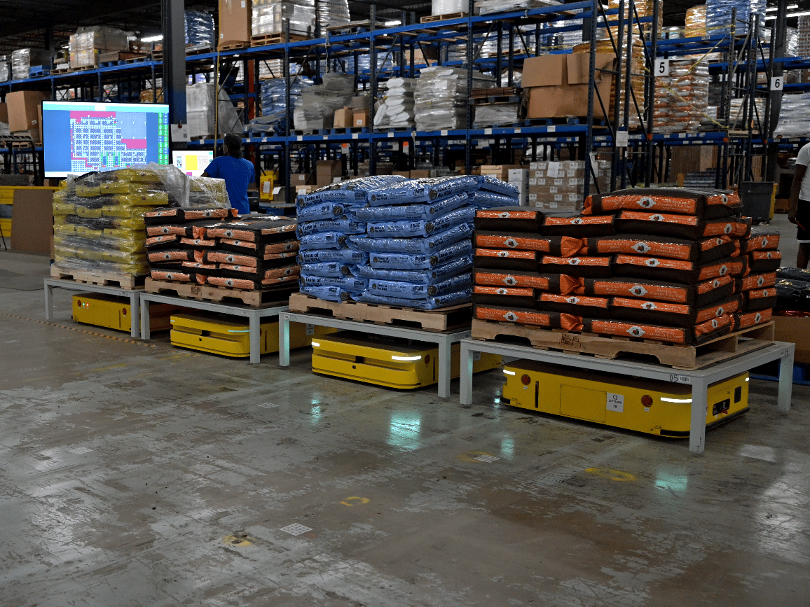 Liftians AGVs delivering goods to picking station Photo by Liftians